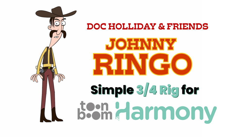 Introducing The JOHNNY RINGO Toon Boom Harmony Rig - from Pixel Blue's DOC HOLLIDAY & FRIENDS Character Series. This Simple 3/4 Rig is great for building scenes or practicing Cut Out animation.